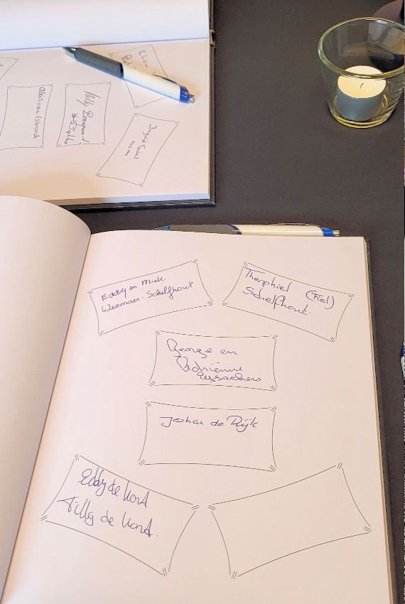 Om 14.00 uur stroomde De Schuur vol. Dorpsgenoten, familie, vrienden en bekenden, ruim 130 mensen tekenden het receptieboek. De receptie was tot in de puntjes verzorgd.