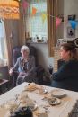Om 10.00 uur ging de bel opnieuw: de burgemeester stond op de stoep. Of ze welkom was? “Natuurlijk!” Het werd thee met gebak — vers meegebracht door dochter Lissette. De tijd vloog voorbij.