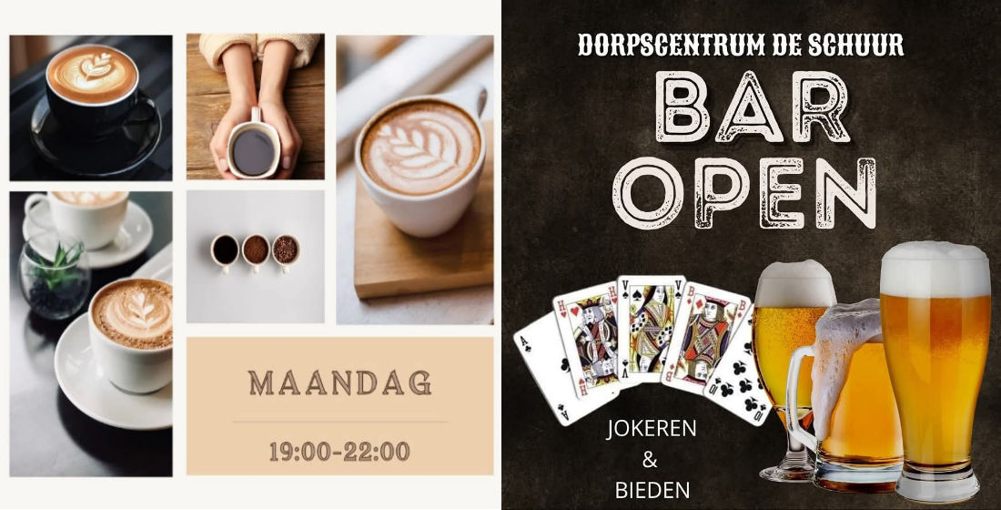 Kom maandag gezellig langs op onze bar-avond in het dorpscentrum De Schuur. Een avond vol gezelligheid een drankje en een goed gesprek.