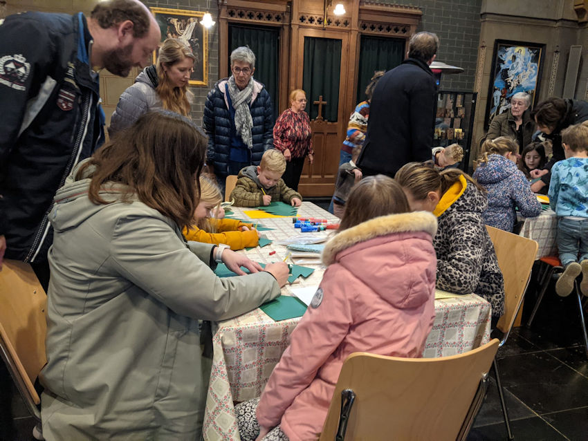 De Catharinakerk is al echt in kerst stemming. De jeugd vierde met de kinderkerk de derde adventszondag. Zo werden 3 kaarsjes aangestoken, het verhaal van Maria en de engel werd verteld, een adventslied gezongen en een adventskalender in de vorm van een kerstboom geknutseld.