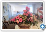 Na de winterstop zijn de bloemschiksters opnieuw gestart. Meteen met een fors bloemstuk. Een voorjaarsstuk met tulpen en daarnaast vooral bloeiend materiaal uit eigen tuin, zoals helleborus en wilgenkatjes. Deze charmante takken met pluizige bolletjes zijn als een soort vlechtwerk over het bloemstuk gelegd. Iedereen was weer blij dat ze weer konden beginnen en zoals altijd met een mooi bloemwerk naar huis konden gaan.
