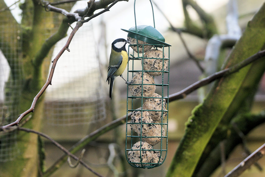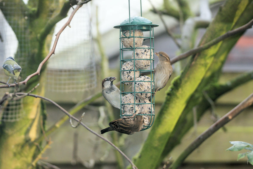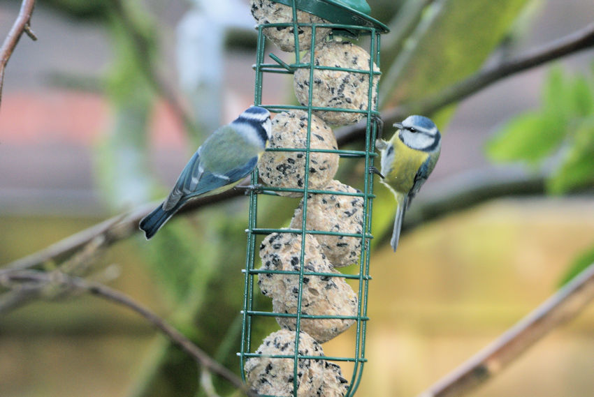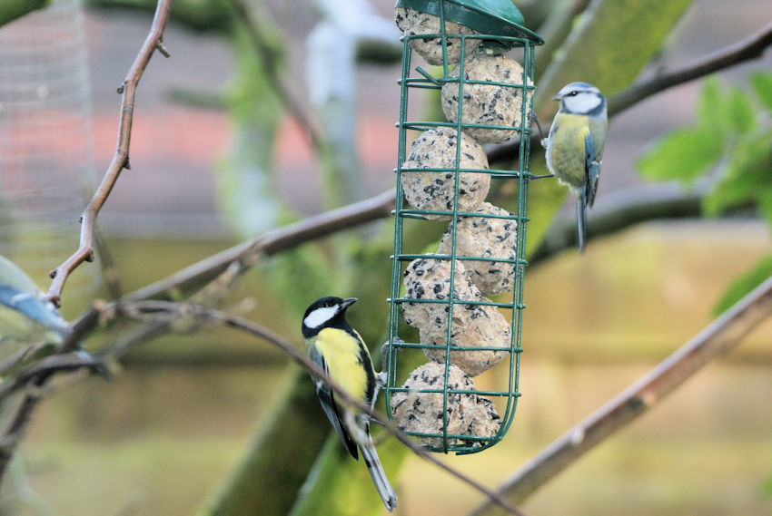 Inmiddels zijn er al zo’n 300 bolletjes verorberd, en ligt er alweer een nieuwe voorraad van 150 klaar. Gisteren hebben we de camera met zoomlens opgesteld om het spektakel eens goed vast te leggen. Want zeg nou zelf: het is een klein feestje om de vogels zo bezig te zien.