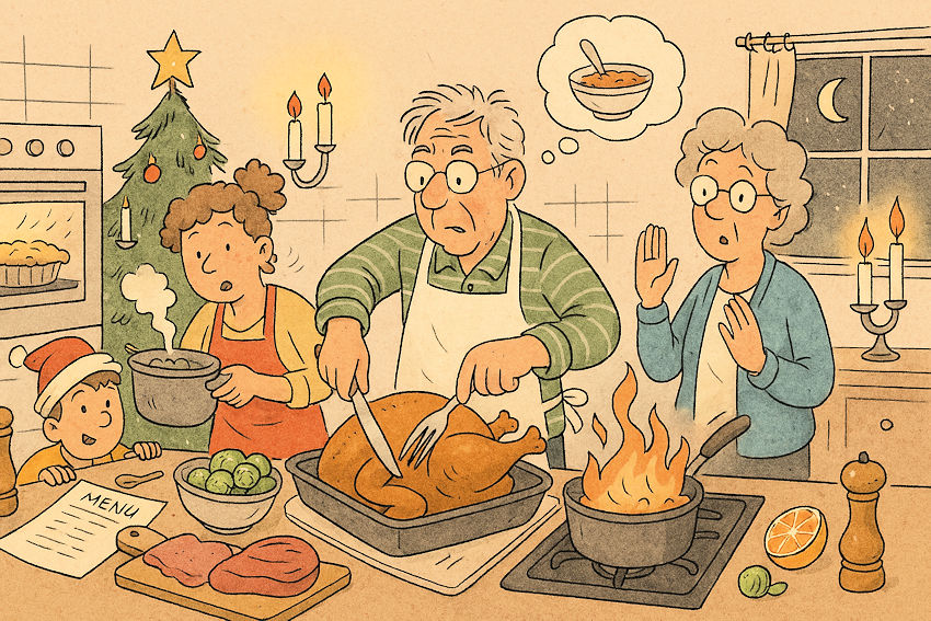 Maar dan, als de kaarsjes branden en iedereen aan tafel zit, gebeurt het wonder. De chaos van de keuken verandert in gezelligheid. De kalkoen smaakt prima, zelfs al is hij een tikje eigenwijs uit de oven gekomen. De spruitjes zijn verrassend lekker. En de dessertchaos, want er is altijd iemand die het toetje nét iets te enthousiast heeft geflambeerd, levert vooral veel gelach op.