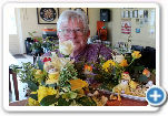 De bloemschikkers waren aan het paasstuk toe. Van berken- en toverhazelaartakken werd een nest bebouwd. Een ei volgde door takken van de gele knotwilg te masseren en vervolgens te rangschikken. De traditionele buxus is vervangen door ilex of hebe waarbij meteen tips om deze als stekjes te vermeerderen meegegeven worden. De kleurige bloemen maken het geheel tot een echte paasdecoratie.