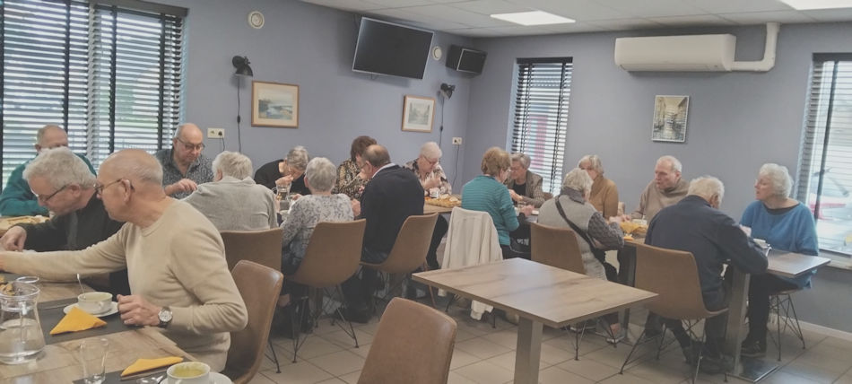29 leden van de KBO genoten gisteren van dit voedzame winterse gerecht. Voor de vegetariërs onder hen was er aspergesoep, meer een lentealternatief.