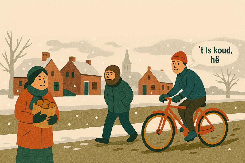 In het dorp zie je het ook. Mensen lopen sneller, groeten korter, en zelfs de hond van de buren kijkt alsof hij liever binnen was gebleven. Bij de bushalte stond iemand vanochtend met zo’n muts waar alleen de ogen nog uitsteken. Ik herkende hem pas toen hij “môgge” mompelde, en zelfs dat klonk alsof het door een sneeuwduin kwam.