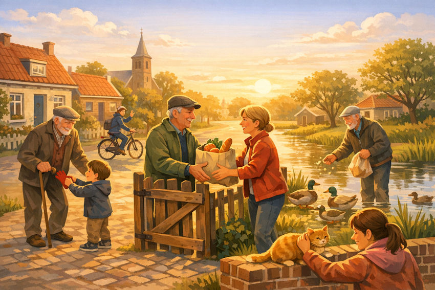 Goede daden hoeven niet groot te zijn. In een dorp als het onze zit het hem vaak in de kleine dingen: een zakje oud brood voor de eenden, een helpende hand bij het openen van een stug tuinhek, of gewoon even vragen hoe het gaat.