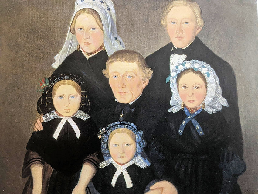 Het olieverfschilderij is gemaakt in 1866. We zien onder anderen rechtsboven Cornelis van Esbroeck, geboren 25 juli 1847, die van 1902 tot 1918 burgemeester van Hengstdijk is geweest.