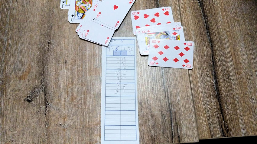 We spelen jokeren en bieden, dus neem gerust plaats aan tafel en speel gezellig mee.