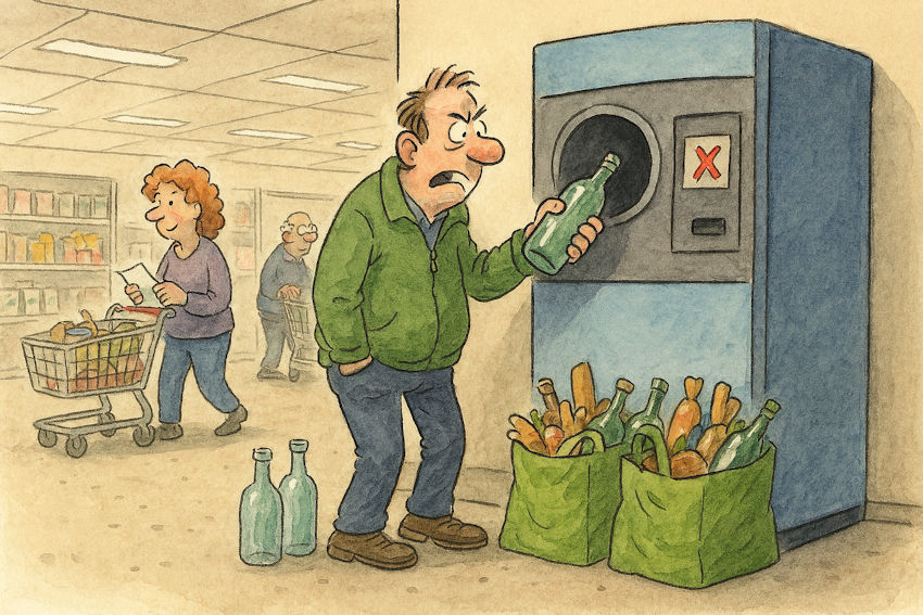 Het is een ritueel dat zich eindeloos herhaalt. Tassen mee, lege flessen mee, goede moed mee… en dan begint het gesjouw. Want hoe je het ook wendt of keert: lege flessen zijn alleen licht als je ze thuis in de schuur laat staan. In de supermarkt worden ze spontaan loodzwaar, vooral als je in de rij staat bij zo’n flessenautomaat die altijd precies bij jou besluit om kuren te krijgen. “Fles onbekend.” “Fles geweigerd.” “Fles verdacht.” Je zou bijna denken dat die machine een hekel aan je heeft.