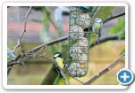 Inmiddels zijn er al zo’n 300 bolletjes verorberd, en ligt er alweer een nieuwe voorraad van 150 klaar. Gisteren hebben we de camera met zoomlens opgesteld om het spektakel eens goed vast te leggen. Want zeg nou zelf: het is een klein feestje om de vogels zo bezig te zien.