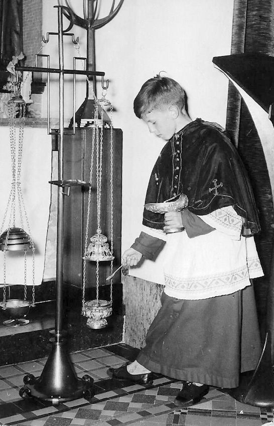 Wie kent dit nog? Uit een tijd dat -misdienaar zijn- nog een serieuze functie was, dat je van school vrijaf kreeg om je werk in de kerk te doen tijdens een begrafenis of een huwelijksinzegening in de kerk. Een taak waar je ook op zondag en vaak op doordeweekse dagen vroeg voor uit bed moest. In de verhalen op deze site komen we verhalen van die misdienaars tegen. Degenen die hier met hun knietjes op zaten zijn de vijftig wel al een heel eind gepasseerd.