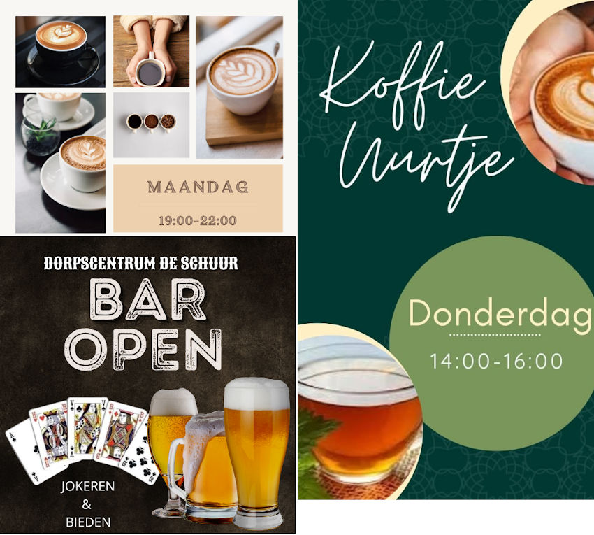 Donderdagmiddag bent je van harte welkom bij ons koffie-uurtje van 14.00 tot 16.00 uur.Kom langs voor een kop koffie of thee. Het is de ideale gelegenheid om even bij te praten, nieuwe mensen te ontmoeten of gewoon te genieten van een ontspannen middag. Iedereen is welkom.