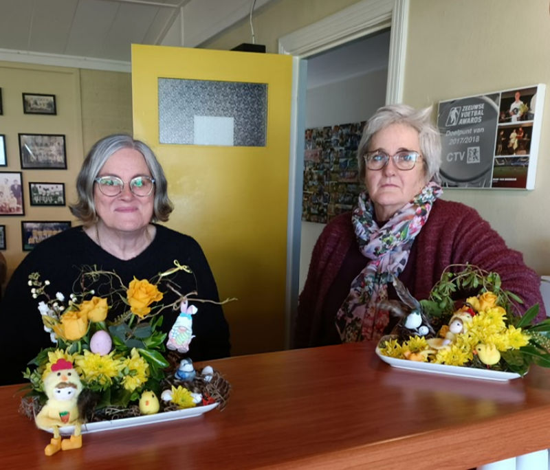 In verband met de komende Paasdagen zijn enkele leden van de Senioren Hengstdijk naar Lamswaarde getogen om een leuk paasstuk te maken. In de SDO kantine waren ze meer dan welkom en werden dan ook verwend met appelflappen, cup cakes en koffie of thee. Het was een gezellige middag met als resultaat een kleurrijk paasstuk.