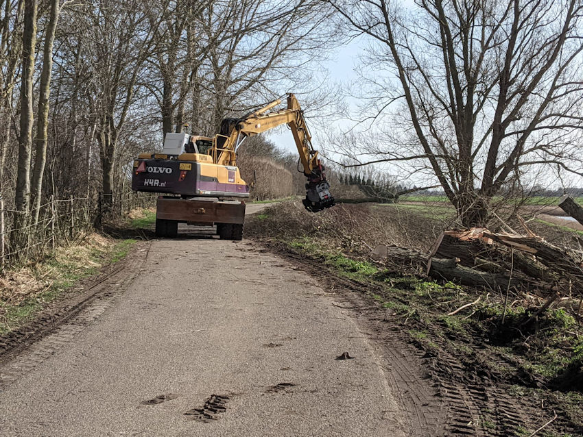 Zo net vóór het broedseizoen werden deze week aan de Zuiddijk een rij bomen gerooid. Je kunt tegenwoordig niet zomaar een boom omhakken en dat is maar goed ook. Het is van belang dat de dieren die in de boom wonen een andere verblijfplaats kunnen zoeken, dat zal hier op de Zuiddijk geen probleem zijn, er staan nog bomen genoeg. De gemeente heeft een lijst van bomen opgesteld waar beslist een vergunning voor nodig is voor ze gekapt mogen worden.
