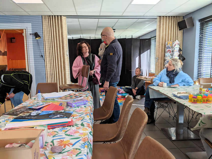 Het was aan de kindjes te zien dat de tijd net omgezet was, ze kwamen langzaam op gang. Toch werd de speelochtend op zondag weer druk bezocht door publiek van alle leeftijden. De organisatie was perfect verzorgd: de diversiteit aan speelgoed gigantisch en voor ouders en belangstellenden stond de koffie klaar. Een gezellig samenzijn waarbij de sociale contacten zeker onderhouden worden.