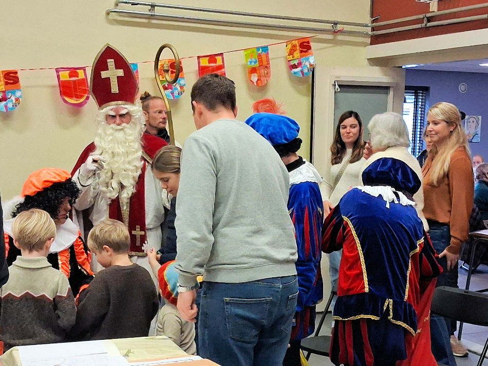 lokaal vol gespannen kinderen, kloppende hartjes en handen die niet konden wachten om pepernoten te graaien. De mijter was indrukwekkend, de baard misschien wat scheef, maar voor de kinderen was hij de echte Sint.