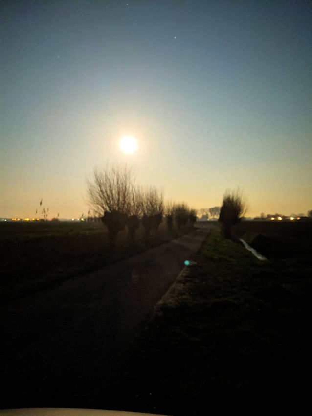 Een mooie onbewolkte nacht, we trekken er weer eens op uit. Perfecte omstandigheden: er staat geen wind en het is niet te koud. Op het water in de Putting zien we een grote klad eenden en ganzen. Of ze hier nu op krachten komen voor de grote trek naar het noorden? We weten het niet. Er zijn al ganzen die koppeltjes vormen, dat zijn vast blijvertjes. We blijven stilletjes om ze niet te laten schrikken. Met een volle maan en onder deze condities is het feest voor de ganzen in de Putting.