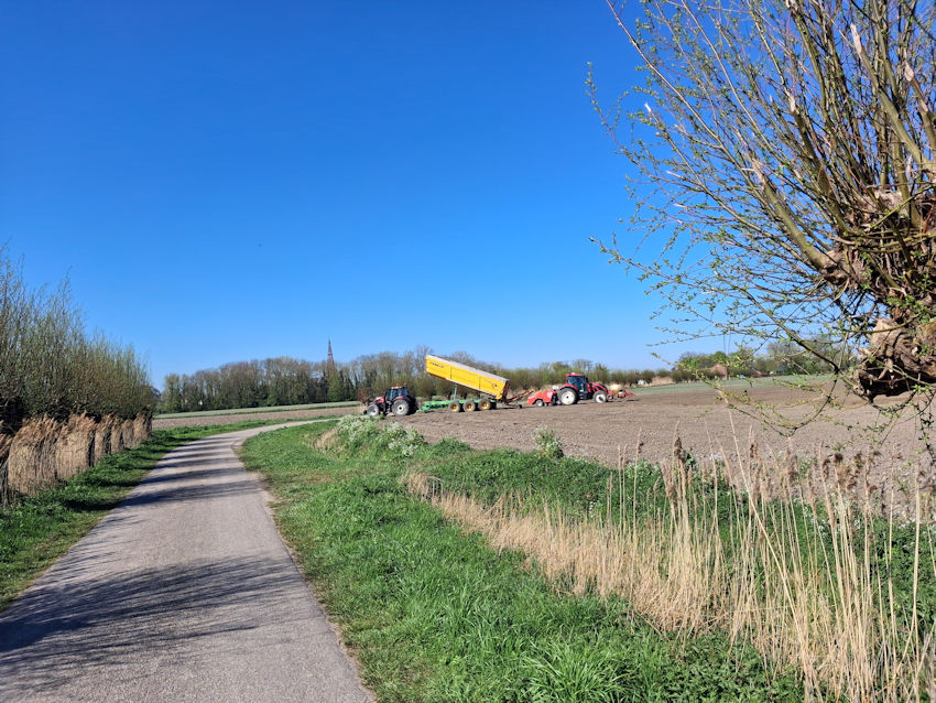 Het terrein rondom de camping wordt nog een keer opgeschoond. We zien een laatste snoeibeurt, het snoeimateriaal wordt netjes gehakseld. Veel en lawaaierig werk, zo is het wel allemaal netjes aan de kant voordat de drukte begint.