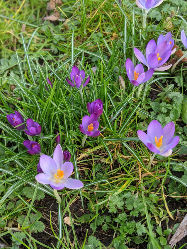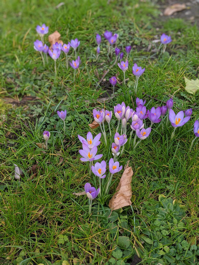 Na de sneeuwklokjes zien we nu de krokussen boven komen op het veldje voor de pastorie. Zo vormen ze een stukje van de voedselboog voor de bijen en de hommels, deze insecten zullen er overvloedig van profiteren. Nog maar even wachten met maaien, kunnen wij ook nog even van de krokussen genieten.